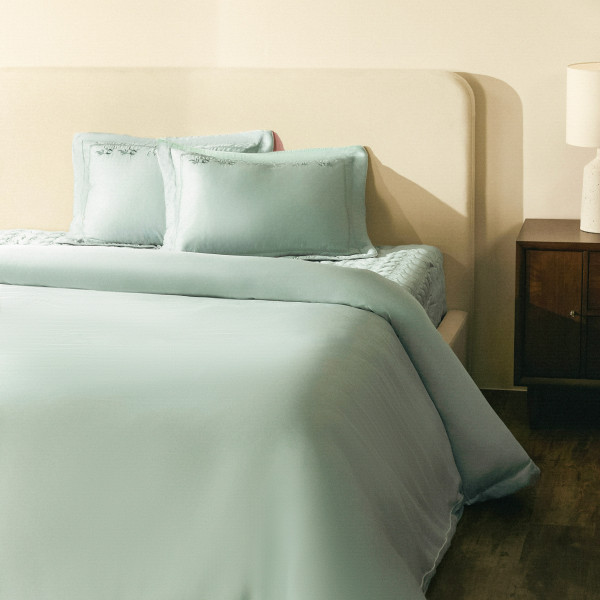 Như một làn gió mát từ khu vườn thanh bình, họa tiết Hoa thanh liễu bung nở nhẹ nhàng trên nền xanh ngọc, gợi cảm giác an yên, dịu dàng. Vải đan kết giữa 3 loại sợi cao cấp Modal, Tencel và Cotton, một lựa chọn tuyệt vời cho những giấc vô lo.
